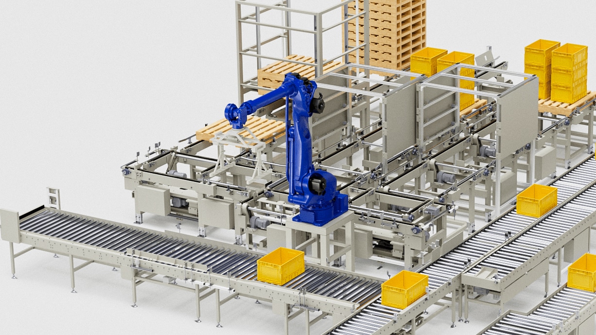 Palletizing/Conveying System with Robotic Arm Palletizing/Conveying System with Robotic Arm